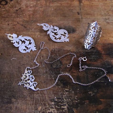 You can make so many things with this technique. A very impressive way of making jewelry that you could do without too many tools, & many different skill levels for everyone. (More pictures found online)Trying your hand at piercing metal is a great project when learning how to use a piercing saw. Practice makes perfect when using a piercing saw, so don’t be too disheartened if you break a few blades when you start. It is important to have the blade in the saw correctly, have a comfortable posture and saw gently without forcing. Allow the saw to do the work!