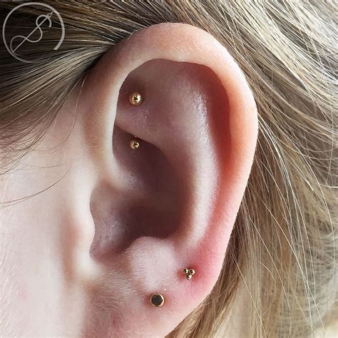 While this piercing is typically performed with a curved barbell for initial healing, Rook Earrings can also be worn in the piercing. Healing time for ear cartilage piercings is six months or longer, like with other piercings. While many people desire matching piercings in each ear, it is strongly advised that you only pierce one ear at a time. You need one ear to sleep on, use the phone, and so on, and getting cartilage pierced in both ears at the same time can be pretty challenging to heal.