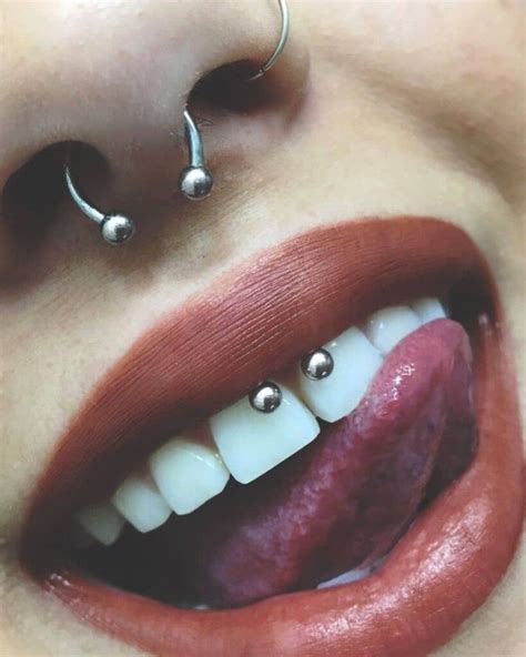 You can also have a piercing on the bottom part of the mouth where the tissue connects the lower lip to the gums this is sometimes called a frowny piercing a lot of people like gum piercings because the piercing itself is mostly hidden and when your mouth is relaxed or closed no one can see the jewelry but when you smile the decoration