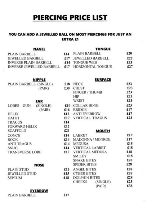Pledge Body Piercing Prices